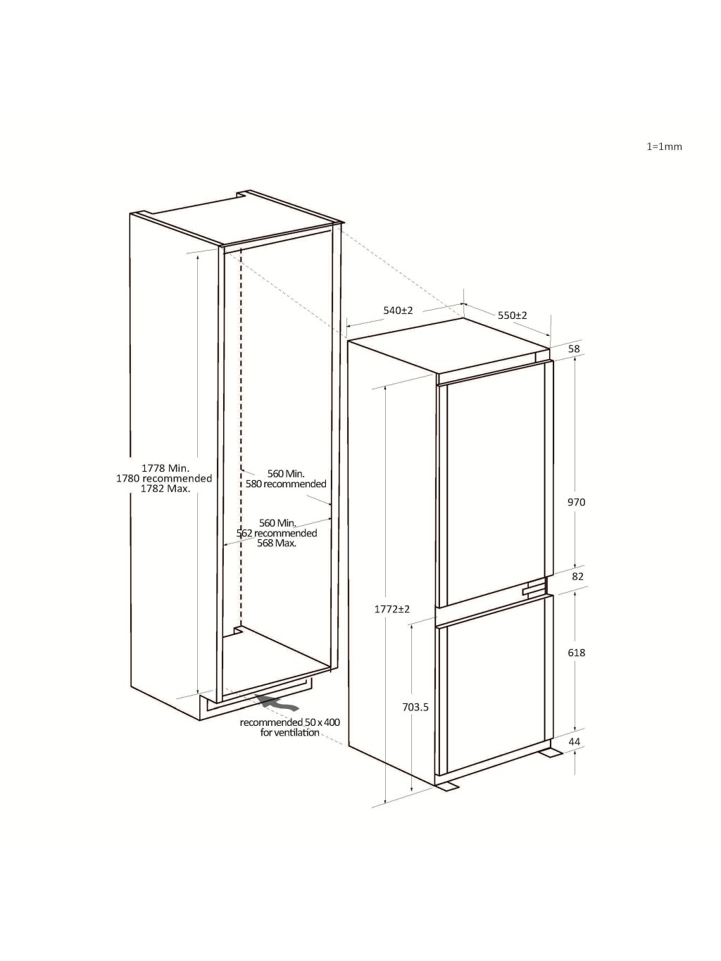 Vestavná kombinovaná chladnička s mrazákem Fresco – šířka 54 cm