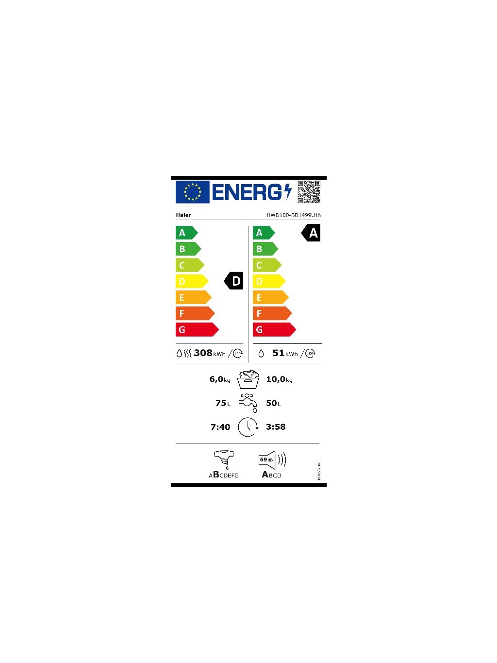 Třída energetické účinnosti sušení / praní D/A